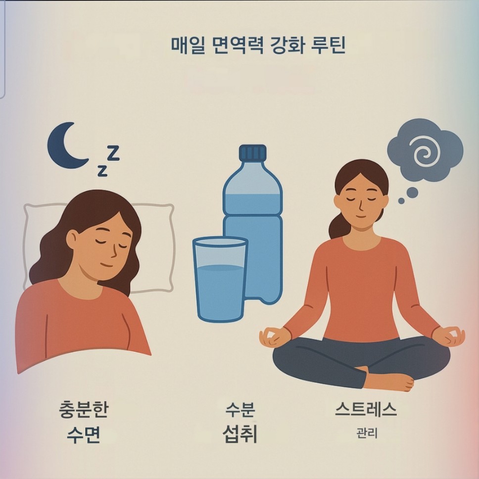 - 일상 속 면역력 유지 루틴 (수면·수분·스트레스 관리 포함)
